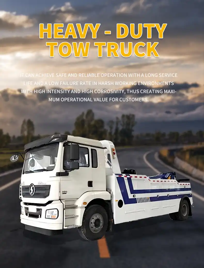 3. Large – tonnage hydraulic winch: High -strength wear -resistant steel -core ropes are selected. lt comes with a brake self – locking and slow – low-ering function. it does not slip or roll backward during heavy- load towing,and is suitable for extreme working conditions ofemergency towing ofheavy – duty vehicles.