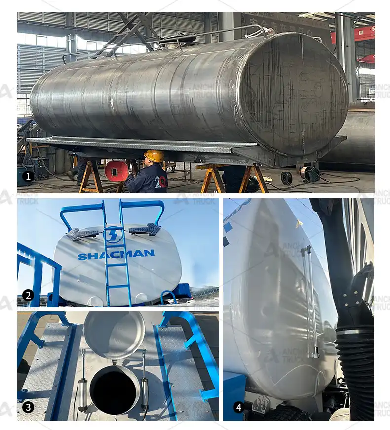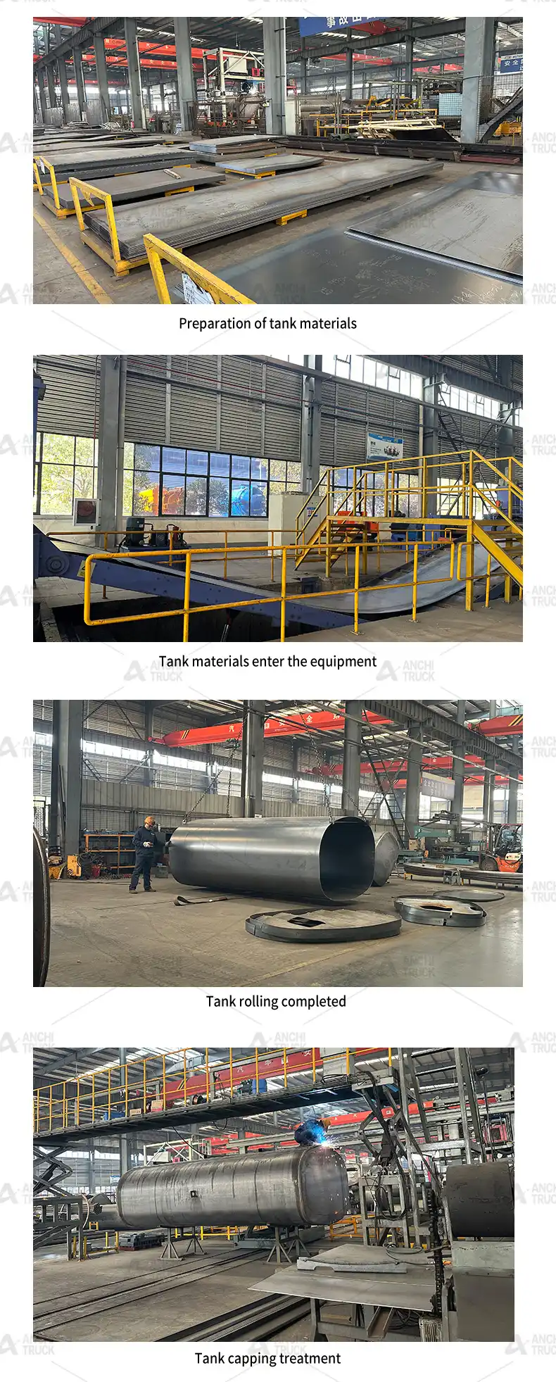 1. Construcción del tanque: El cuerpo del tanque está hecho de acero al carbono o acero inoxidable de alta calidad, formado en un solo proceso de conformado de rollos y luego soldado para evitar fugas.