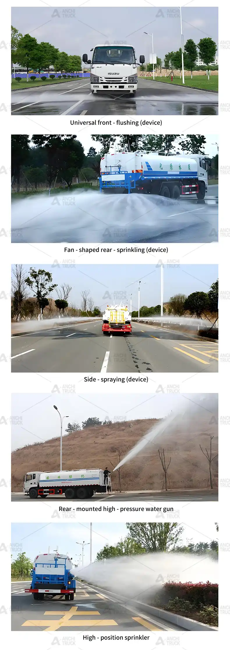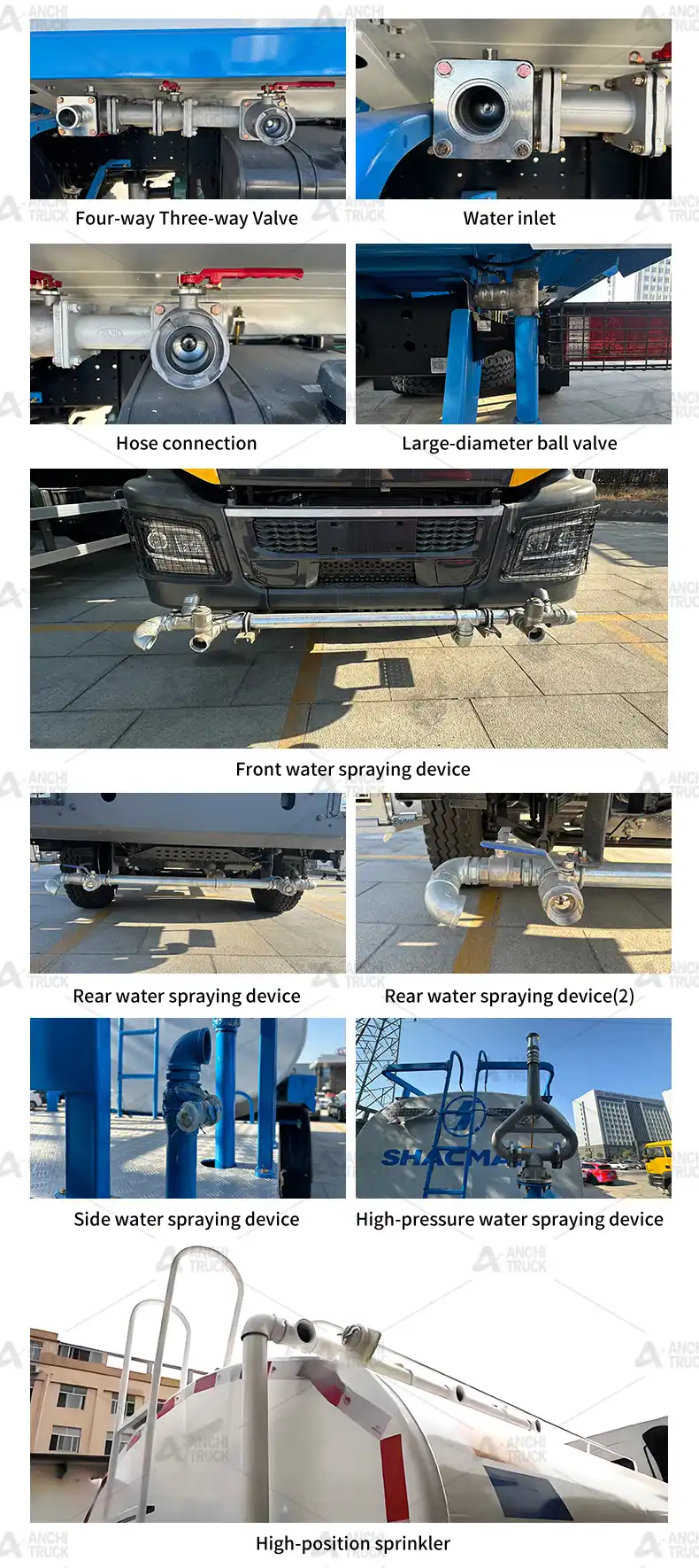 5. Dispositivo de pulverización de agua frontal: se utiliza para rociar agua en la carretera para reducir el polvo.