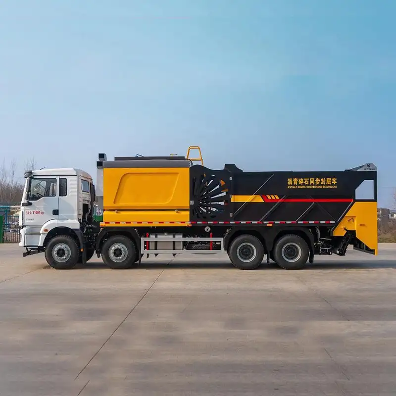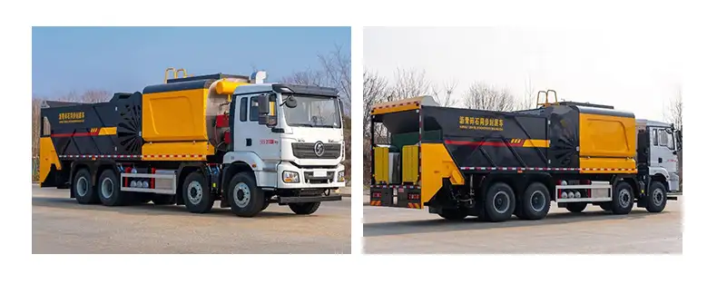 2. Dispositivo de extendido de asfalto: La anchura de extendido es ajustable y la descarga del material es uniforme y precisa, lo que garantiza un recubrimiento de sellado vial de alta calidad.
