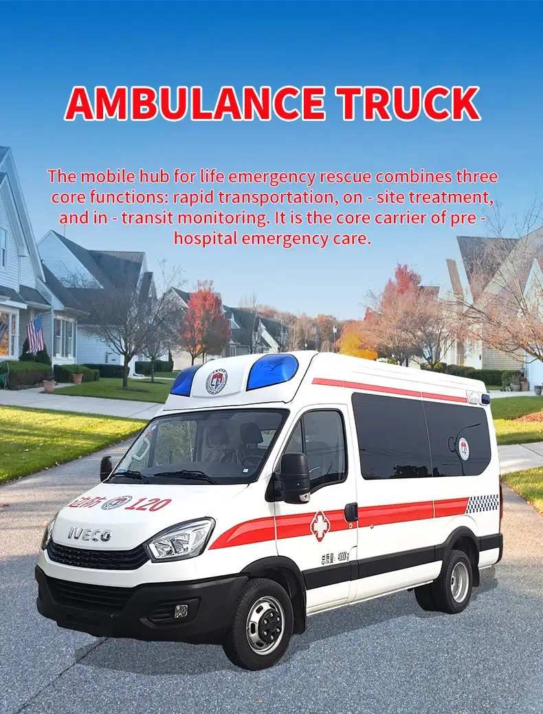 1. Camión ambulancia tipo traslado: con equipo médico básico y amplio espacio, se utiliza para el traslado de pacientes comunes y la recogida y entrega de pacientes dados de alta.