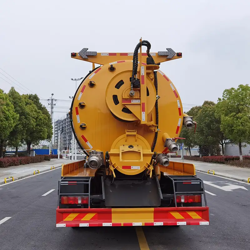 3. Puerto de descarga hidráulica en la parte trasera del tanque: con la ayuda de energía hidráulica, la descarga es rápida y completa.