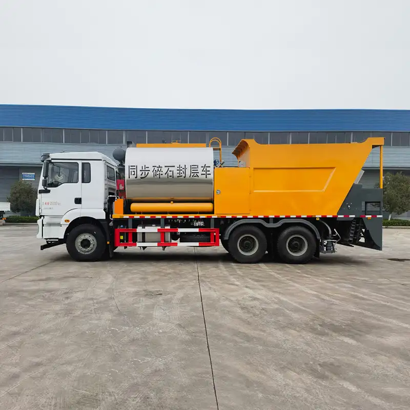 2. Dispositivo de extendido de asfalto: La anchura de extendido es ajustable y la descarga del material es uniforme y precisa, lo que garantiza un recubrimiento de sellado vial de alta calidad.