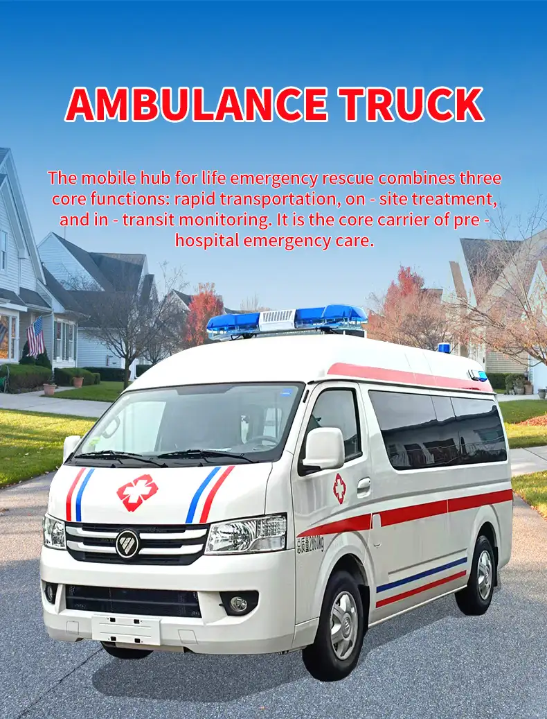 1. Camión ambulancia tipo traslado: con equipo médico básico y amplio espacio, se utiliza para el traslado de pacientes comunes y la recogida y entrega de pacientes dados de alta.