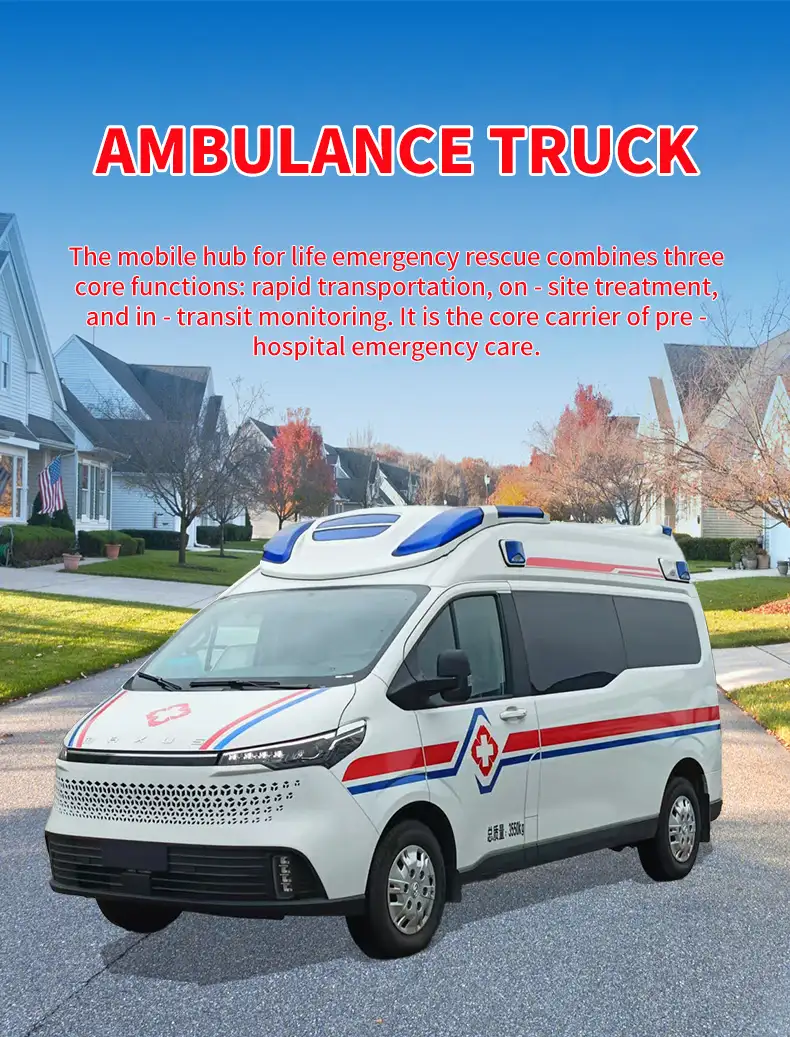 1. Camión ambulancia tipo traslado: con equipo médico básico y amplio espacio, se utiliza para el traslado de pacientes comunes y la recogida y entrega de pacientes dados de alta.