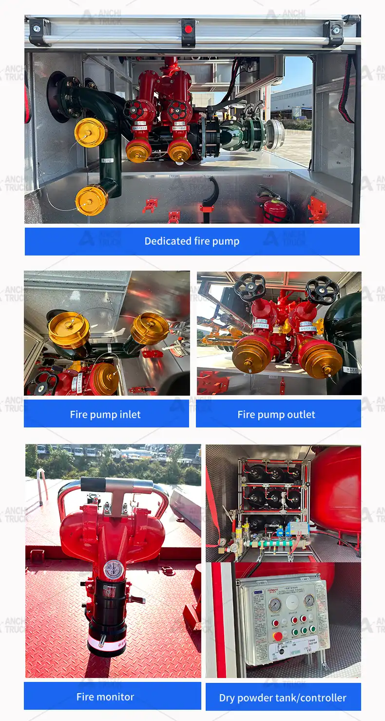 5. Dry powder tank: High – efficiency fire -extinguishing with environmental-ly- friendly materials.