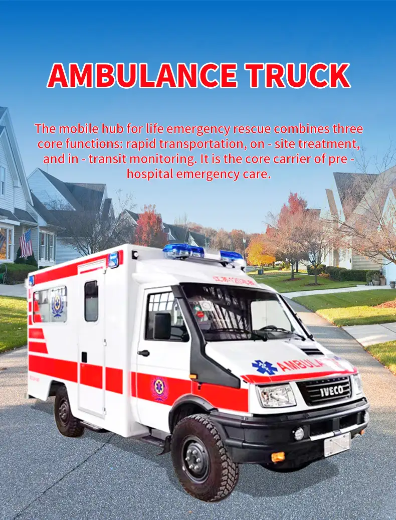 2. Ambulância tipo monitorização: Equipada com um conjunto completo de equipamento de primeiros socorros e uma cabine de pressão negativa, é adequada para tratamento de emergência e transferência de doentes em estado crítico.
